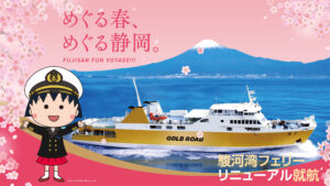 清水港と土肥港を結ぶ駿河湾フェリーが「ちびまる子ちゃん」の世界観満載に!